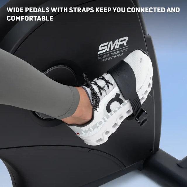 Extra wide foot pedals with adjustable straps