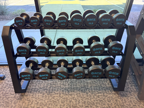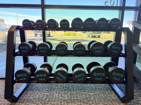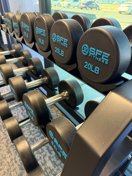 SFE 5-75LB Urethane Dumbbell Set w/ Commercial 3-tier Rack (New)